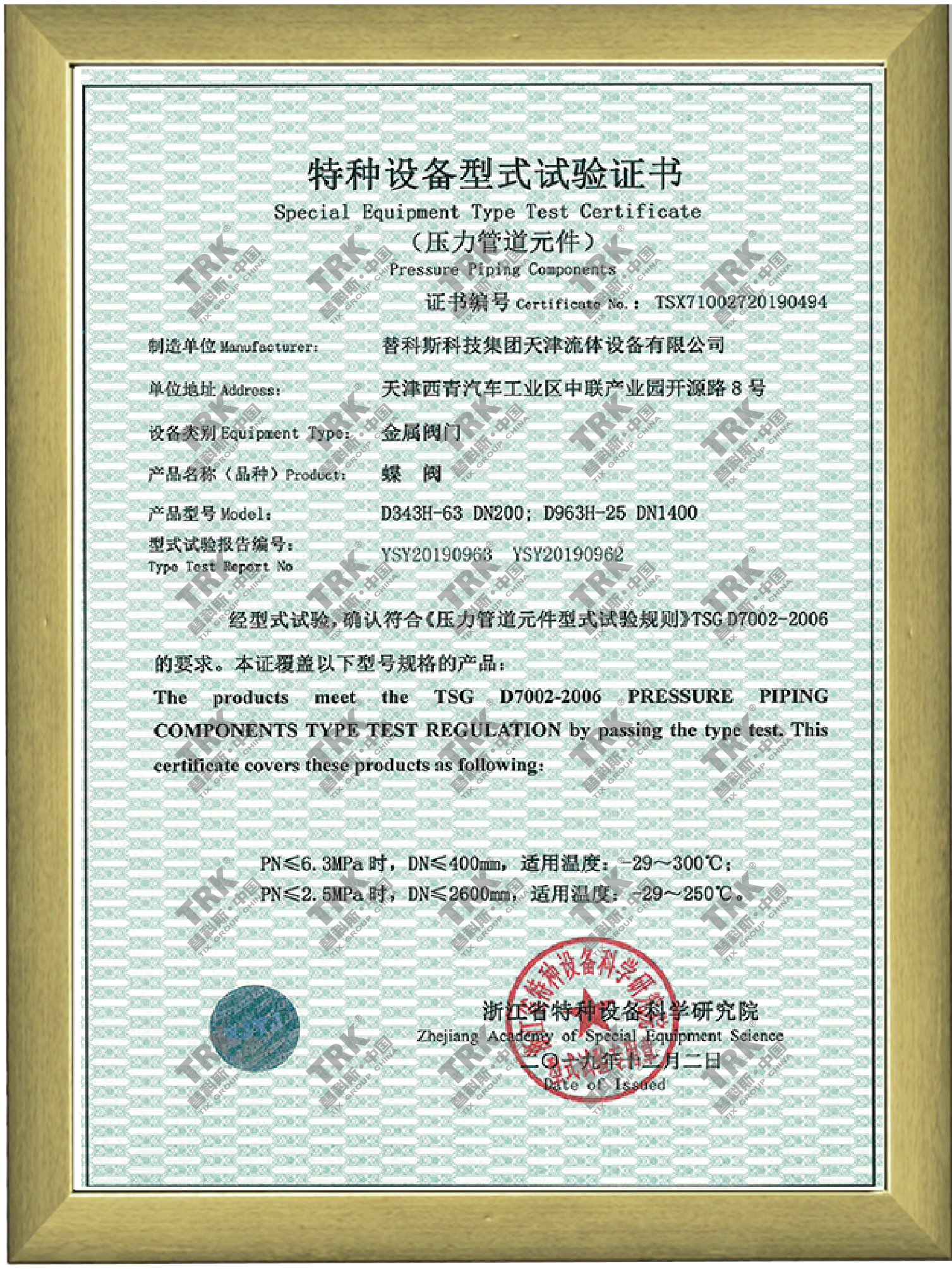 標準編寫證書-城鎮供熱用雙向金屬硬密封蝶閥